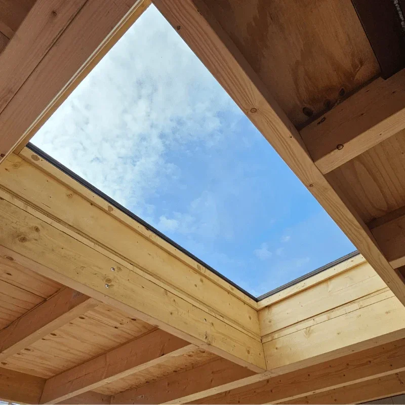 De eerste etage is ingericht als een grote kantoortuin met twee vergaderzalen. De houten spanten en plafonds blijven zoals het is. Het dak wordt van buiten geïsoleerd zodat esthetiek en comfort hier samen gaan. Een ruimte lichtkoepel en nieuwe dakramen zorgen voor veel daglicht.